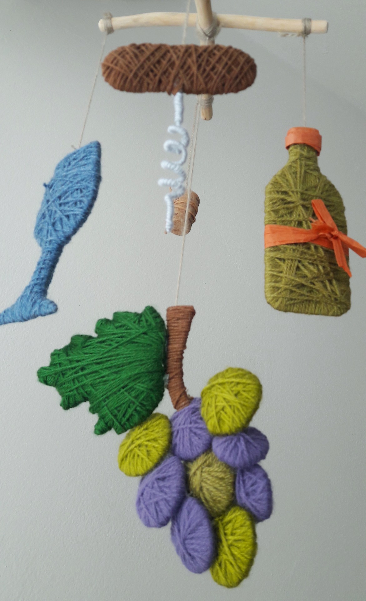 Minimalistický kolotoč nad postýlku v jemných barvách.