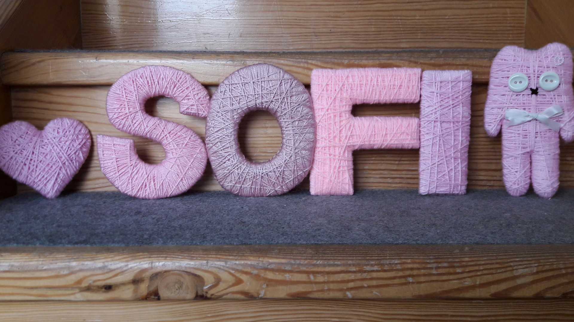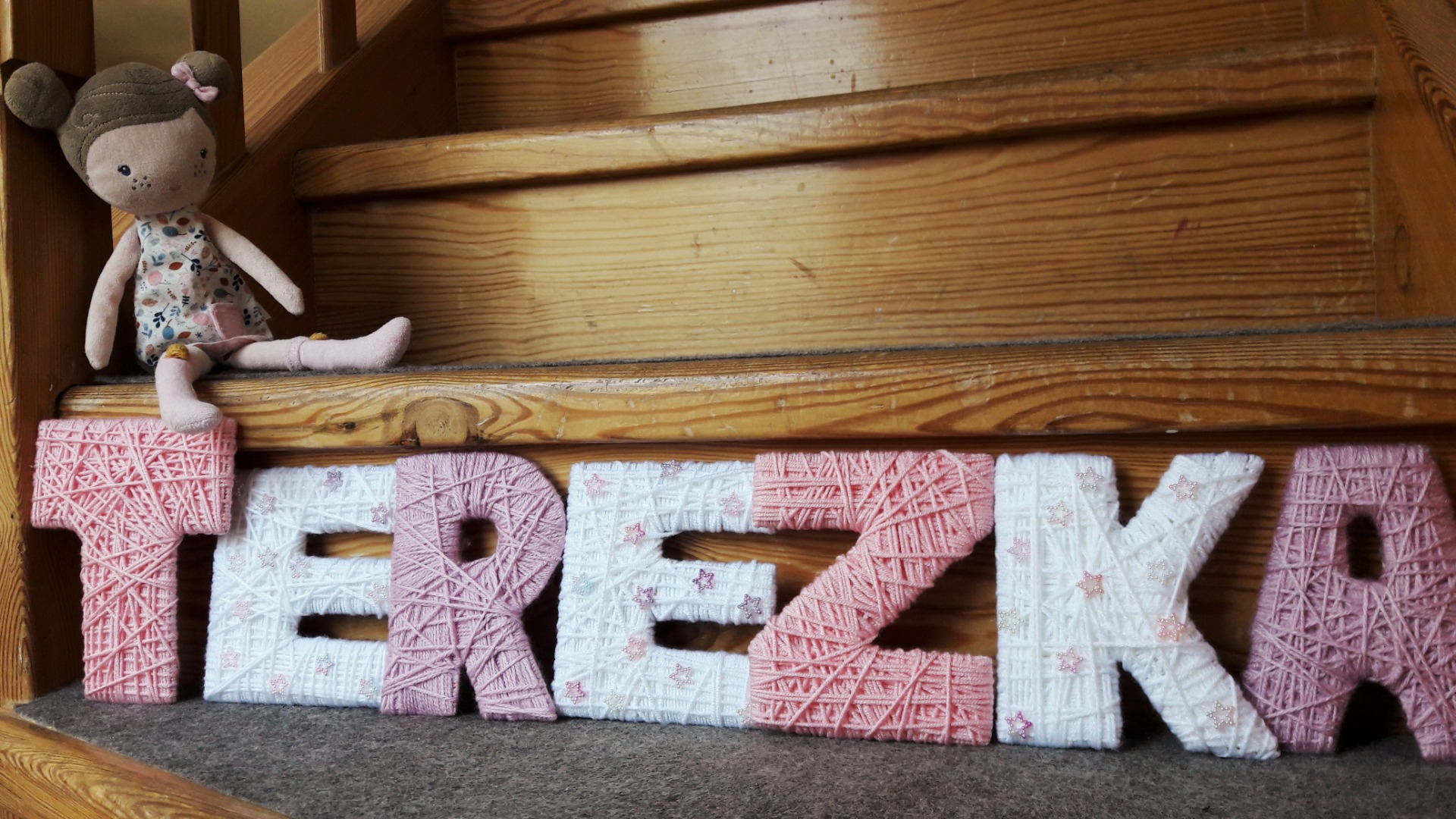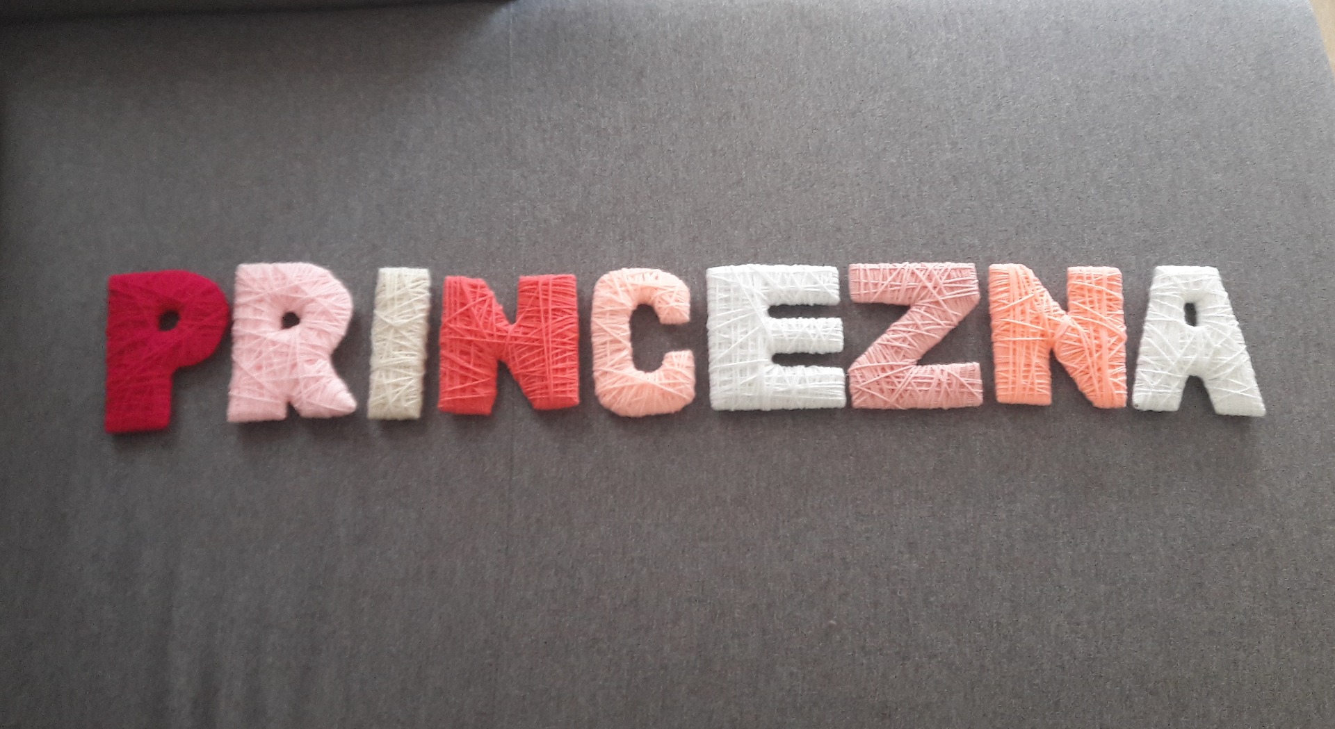 - Písmenka jsou opravdu lehká, proto je můžete přilepit oboustrannou páskou kamkoliv. Pří nedůvěře k povrchu, doporučuji našít na písmenka kousek kartonu, ráda s tím pomůžu.