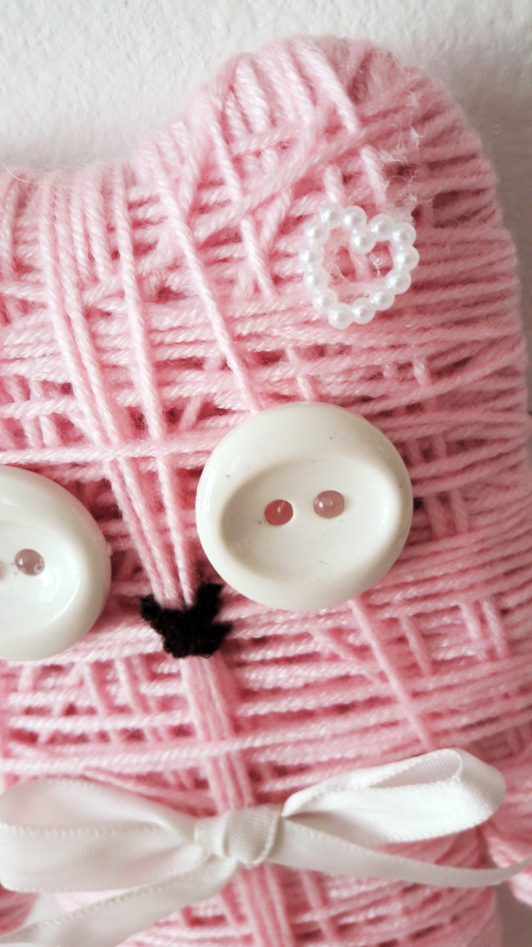 Měří ani ne 20 cm, je z hypoalergenní vlny a nosí mašli, aby se víc blýskla.