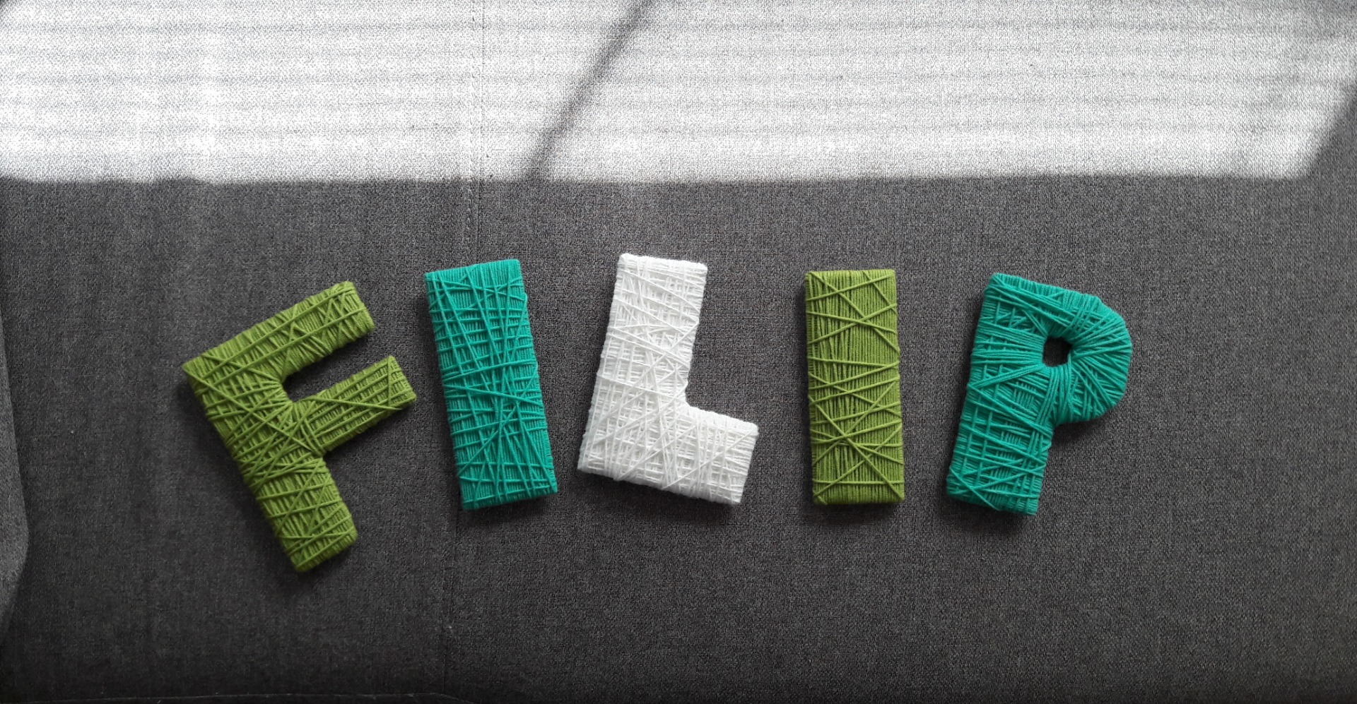 5) Prošít jednou velkou nití a celý nápis zavěsit na dva háčky či hřebíčky.